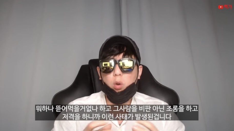 결국 사생팬이라는 사람은 사라지고 빽가는 여전히 잘 나가는 레커 유튜버이다